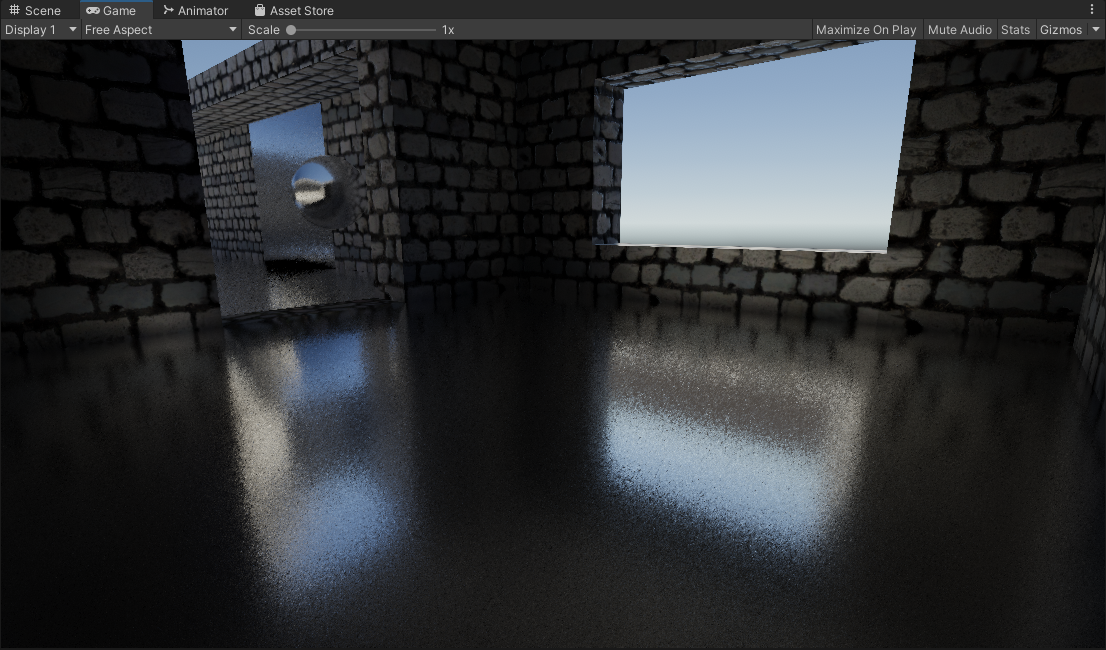 Now obviously the drawback of this solution is that it is temporal, it accumulates results over multiple frames. Because of that you’ll have to deal with the problems that come about with temporal rendering such as disocclusion events, changing perspective, ghosting, and that whole mess. Filtering this with an additional blur that is normal aware will help you here but that introduces inaccuracies as well with trying to retain sharp reflections. Pick your poison.